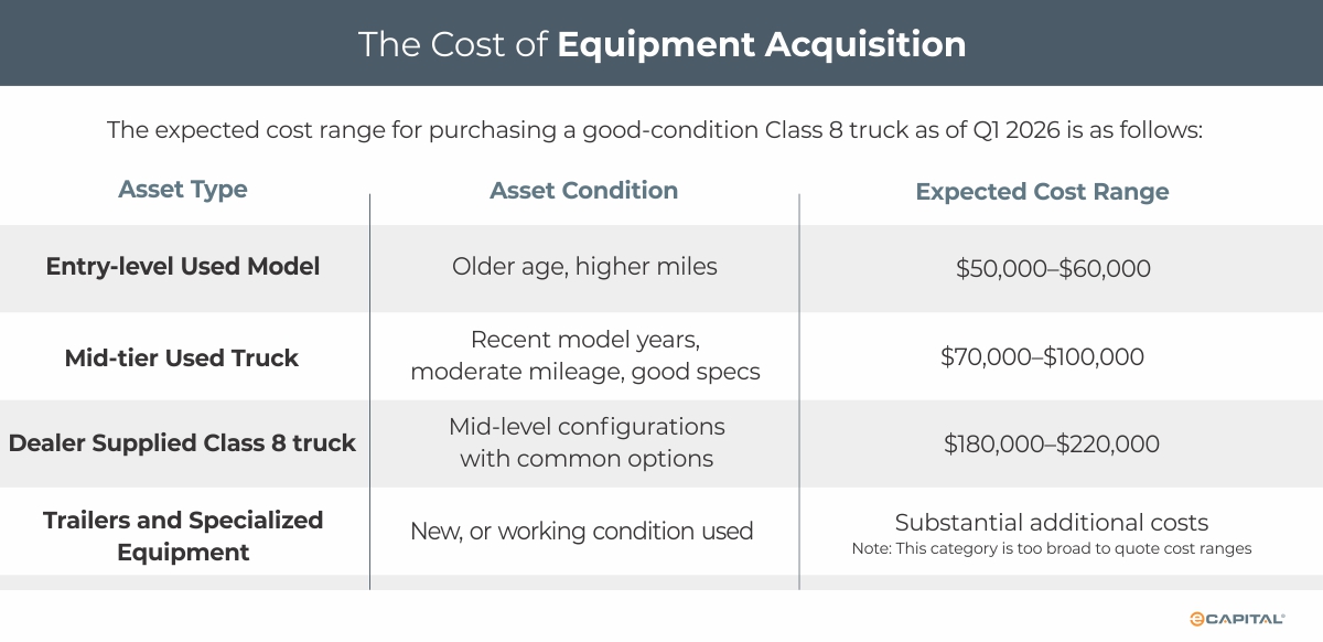 Because working equipment directly affects fuel efficiency, maintenance costs, reliability, and tax implications, every purchase or lease decision has long-term financial outcomes. The cost of acquiring equipment is one of the most significant financial burdens for trucking companies. For most operations, trucks and trailers represent the largest capital investment and a major determinant of cash flow, profitability, and growth capacity.