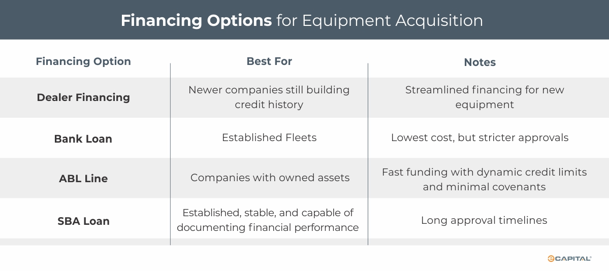 Ultimately, the best option is the one that aligns with your fleet’s financial position, operational priorities, and long-term growth strategy. Consulting with your accountant, financial advisor, or financing partner is the best way to determine which option strengthens your cash flow, supports your goals, and positions your fleet for sustainable growth.
