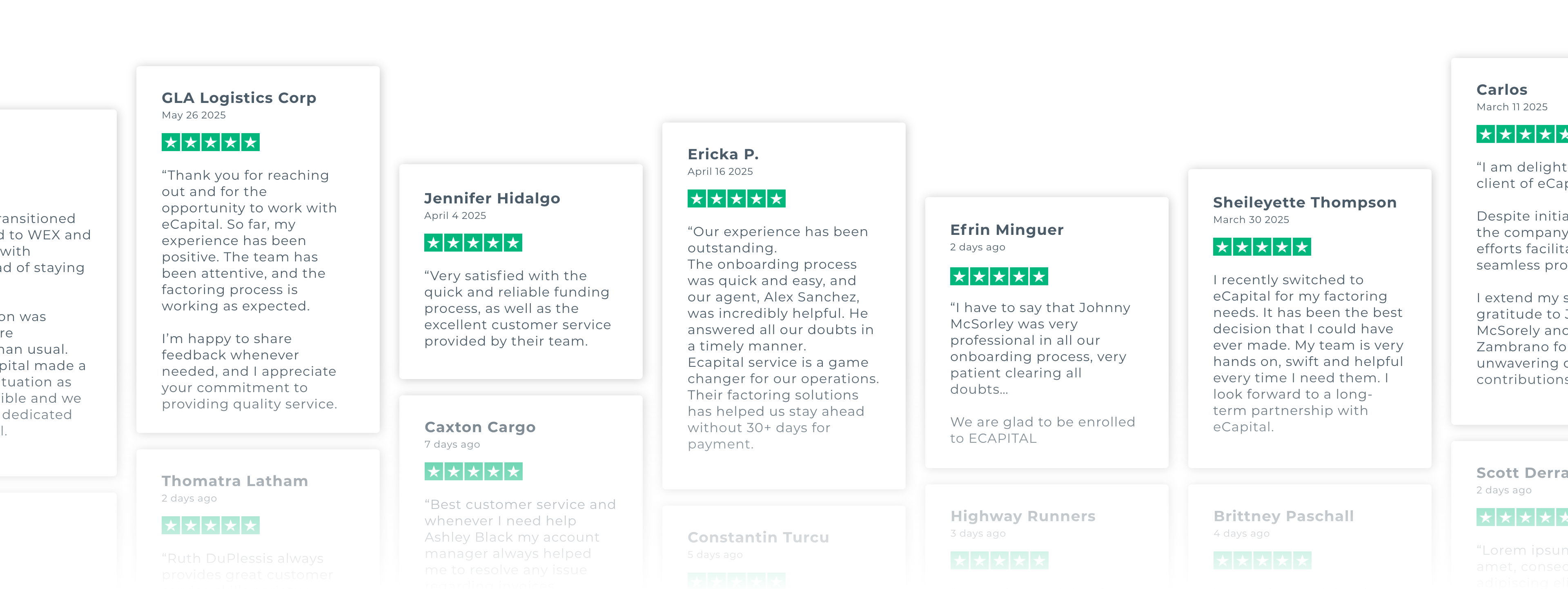 For over 18 years eCapital, a freight factoring company, has helped more than 30,000 businesses grow. We want to do the same for you. Take a look at the latest reviews from our customers.
